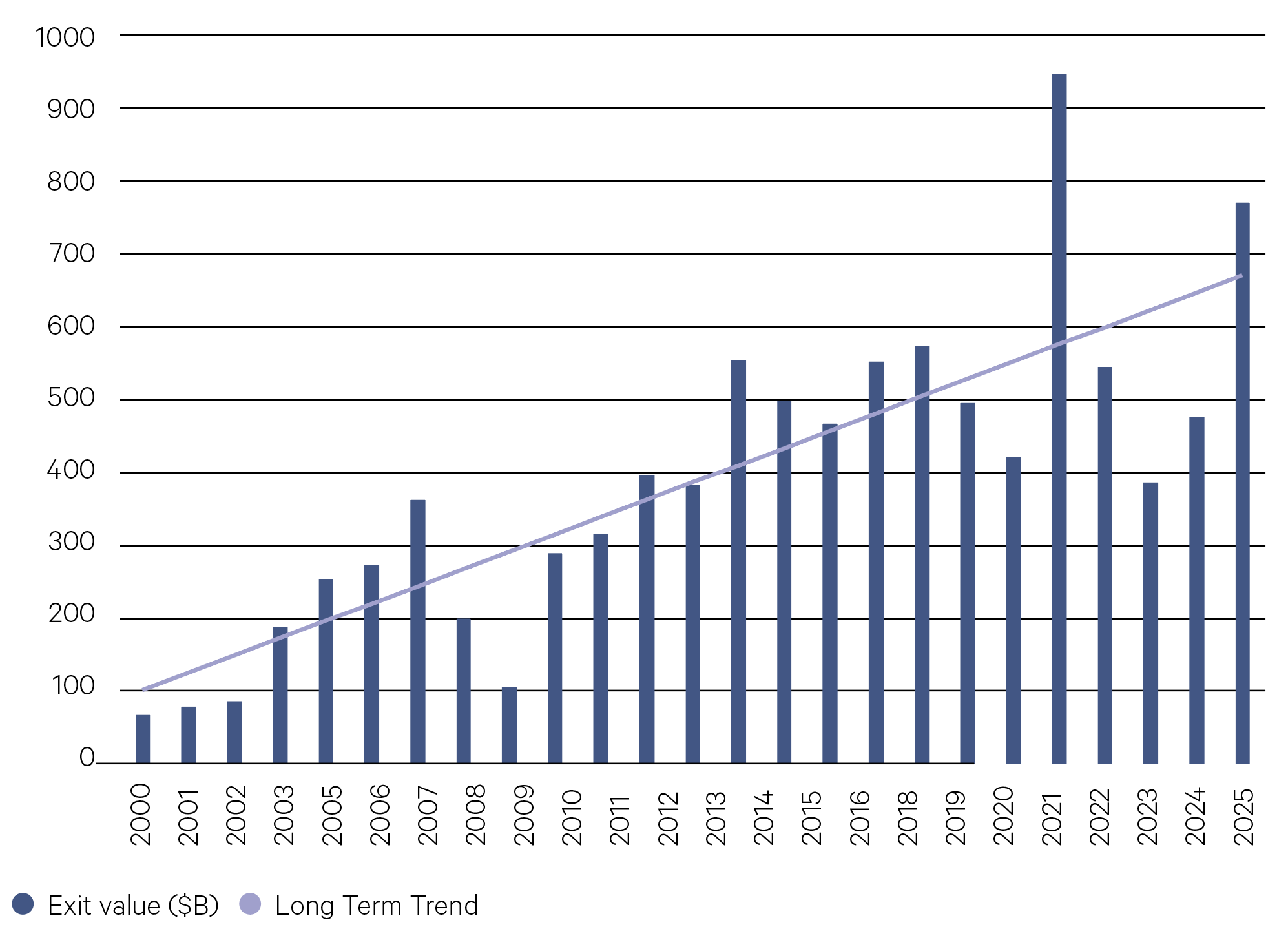 Source: Pitchbook, 30/9/2025 (extrapolated to 31/12/2025)