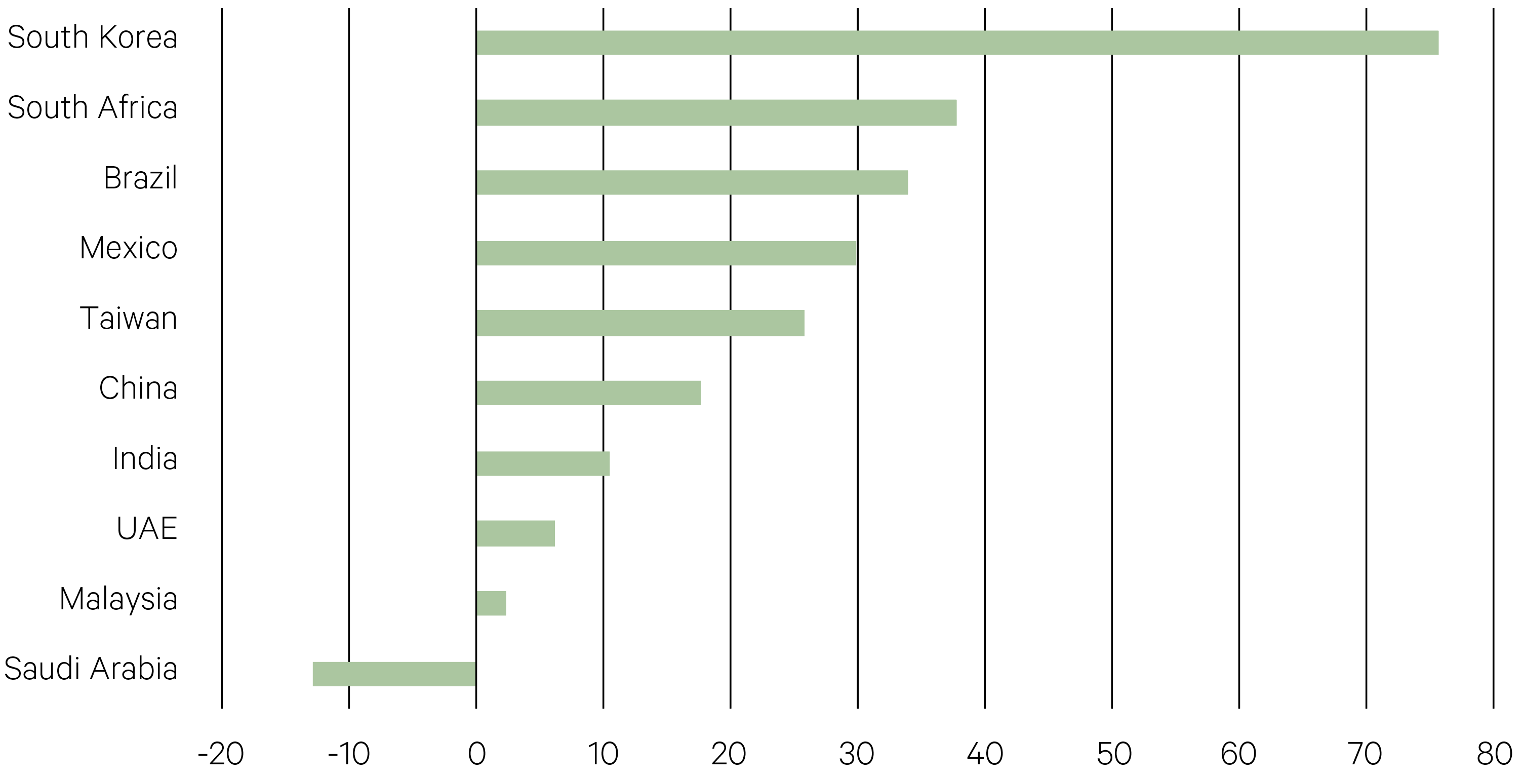 High dispersion in Emerging Markets – returns in 2025 (%)