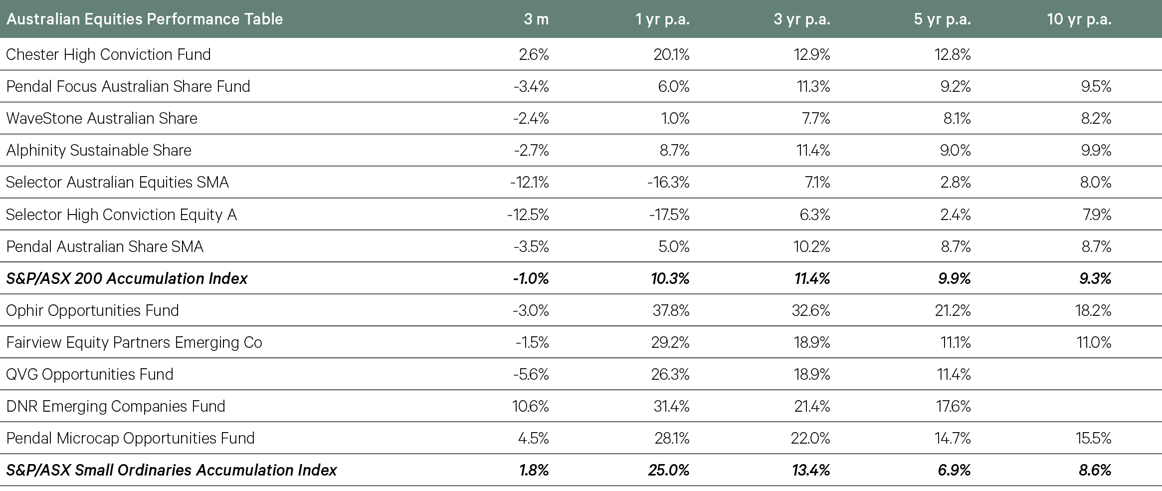 Among our large and mid cap managers, the relative performance of funds was primarily driven by their relative weightings across these two segments of the market – resources and growth stocks. The Chester High Conviction Fund was thus a standout, lifted by gold and broader resources exposure, while supported by a more value-oriented approach in industrials. Selector was the clear laggard, with the fund’s portfolio largely comprised of the sectors of the market that have come under the most pressure.