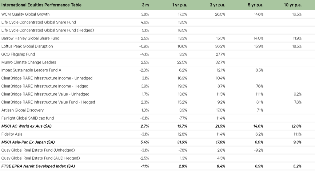 After leading the broader market’s returns in the prior quarter, funds with a growth bias had more variable returns in the December quarter amidst a fragmentation in key AI-driven stocks. The softer performance of Loftus Peak and WCM primarily occurred during the pick up in volatility in November.